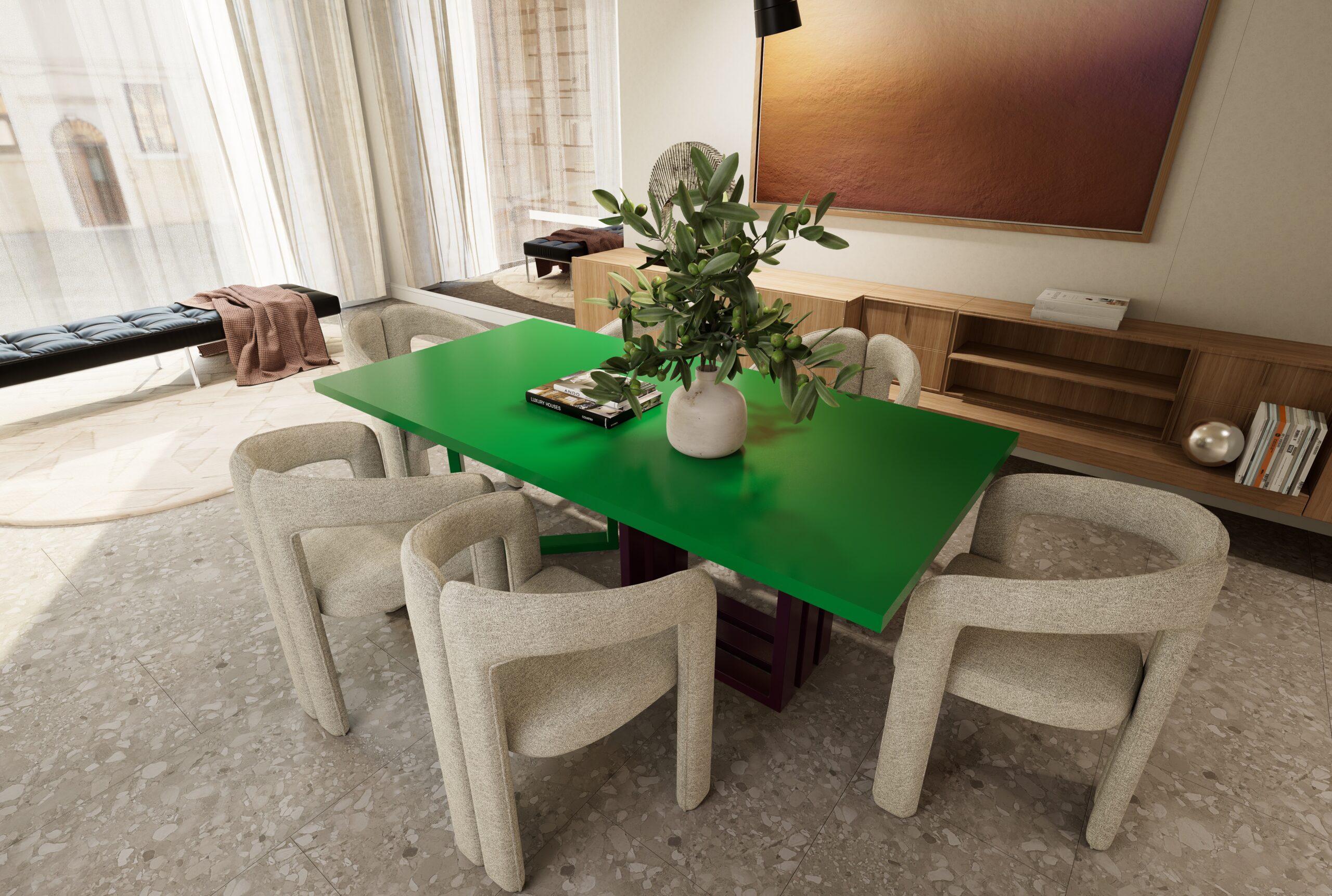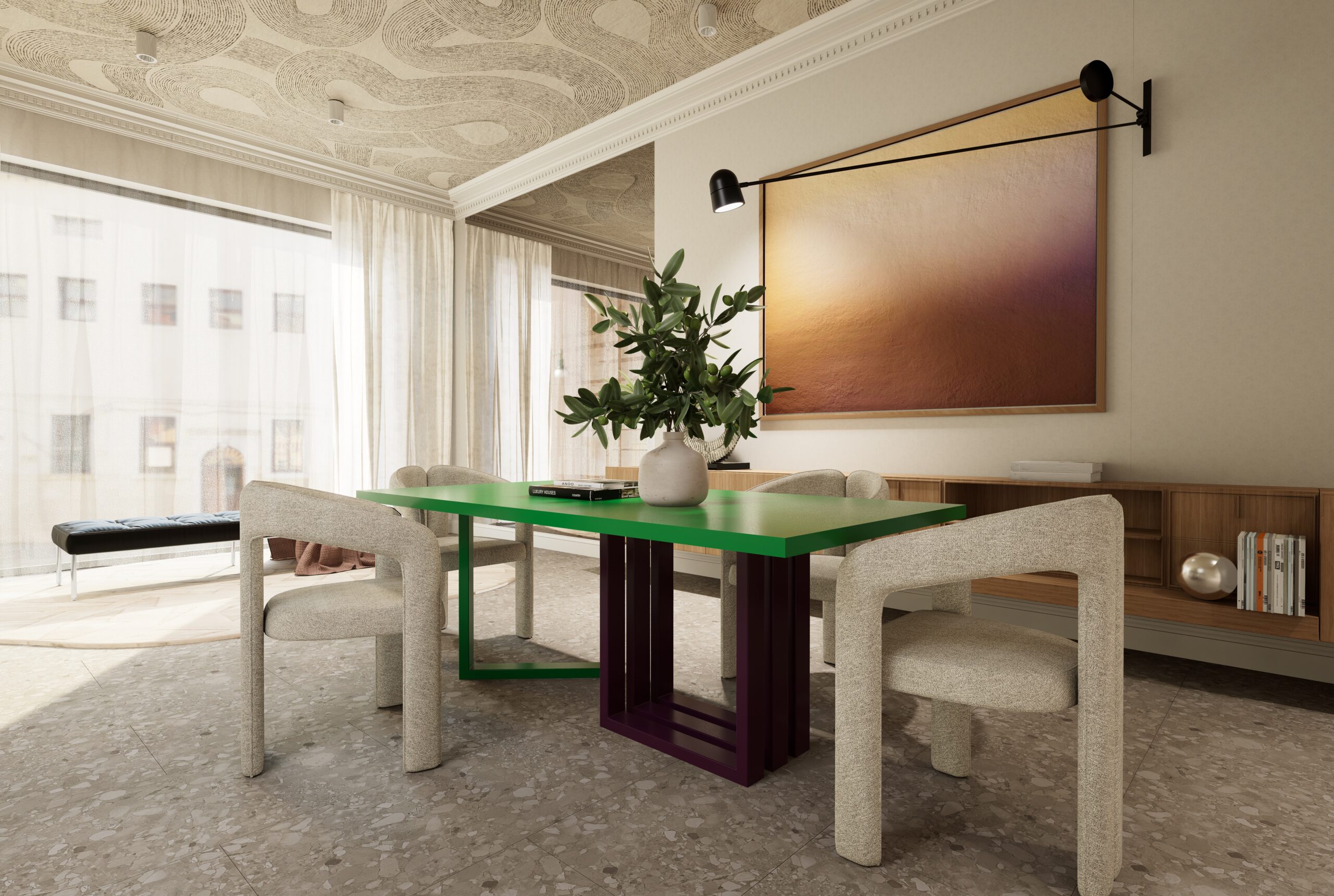 Solidna konstrukcja oraz unikatowy design sprawiają, że Arcolo jest idealnym wyborem zarówno do jadalni, jak i przestrzeni reprezentacyjnych. Tworzony w Polsce z dbałością o detale, łączy autentyczność rzemiosła z nowoczesną formą. Dzięki filozofii our table, your rules sam wybierasz kolor blatu i nóg, nadając mu indywidualny charakter i czyniąc z niego prawdziwe odzwierciedlenie Twojego stylu.